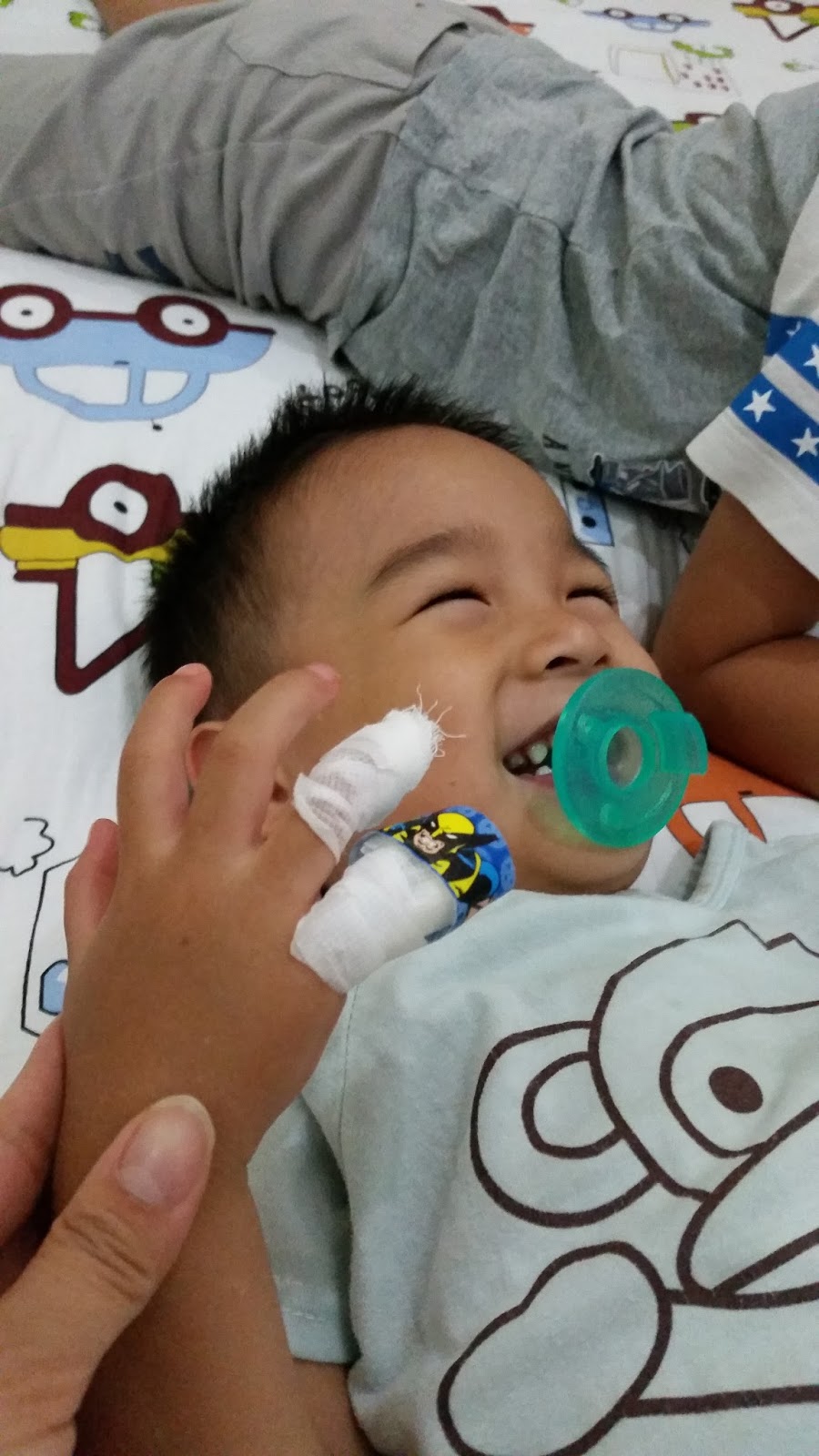 The night we got back from the hospital, Joe looked into the medical information distributed by his kids' international school especially for expats. There were several hospitals in the area that "cater" to foreigners but since Zion was all bandaged up we decided not to get a second opinion. The next evening on the way to pick my mom up from the airport (she took a short trip to Taiwan), Zion's bandage came off and started to bleed again so we decided to go to the hospital the next day. After talking to a friend I found out that they have a glue to keep cuts closed in the US so I wanted to find out if that was available here.